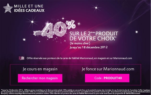 - Jusqu’au 18 décembre, -40% de remise immédiate sur le 2ème produit acheté: