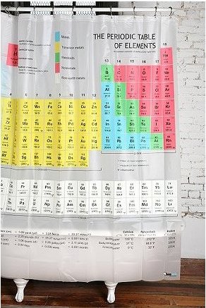 Si en plus c’est un physicien il ne reste plus qu’à lui offrir ce superbe rideau de douche tableau périodique